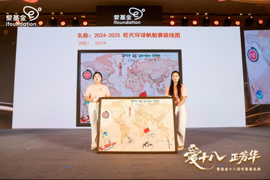 慈善拍賣是慶典最精彩的環(huán)節(jié)。活動(dòng)中,愛(ài)心人士紛紛參與,競(jìng)價(jià)場(chǎng)面緊張熱烈,一個(gè)個(gè)舉起的競(jìng)拍牌,一次次敲響的拍賣錘,都是愛(ài)心的傳遞。每一件拍品成交,全場(chǎng)都會(huì)報(bào)以熱烈的掌聲。經(jīng)過(guò)激烈競(jìng)拍,最終全場(chǎng)39件拍品全部落槌成交。其中,徐京坤特意為慶典繪制的拍品——2024-2025旺代環(huán)球帆船賽路線圖以11萬(wàn)元成交。