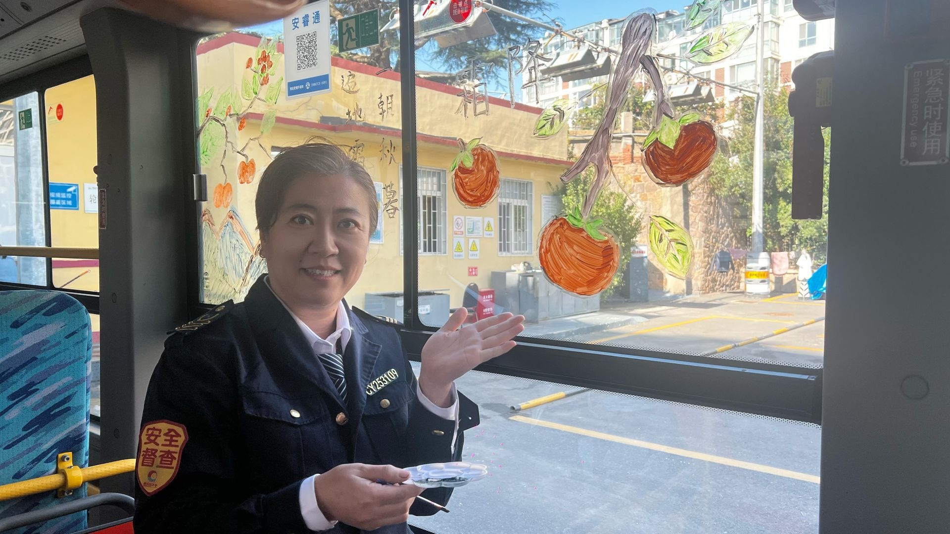 “一招秋暮,遍地霜華”。一大早,乘坐2路公交車的市民發現,紅柿滿枝的溫馨畫面出現在車廂里,與“霜降”字樣相映成趣,諧音好“柿”成“霜”好巧妙地傳遞了駕駛員對乘客的美好祝愿,輔以朗朗上口的小詩,頗有一番蘊意。據了解,該主題車廂是青島公交2路車駕駛員于萍打造的。每當乘客上車,于師傅都會對乘客說一句:“今天霜降了,記得加衣服呀。”在駕駛員的提示下,不少乘客在車窗前抬頭觀看車廂繪畫,感受傳統文化魅力。“我是第一次乘坐這種主題公交,感覺既新奇又激動。”王先生表示,主題車廂是一種無聲的引導,讓乘客利用碎片時間掌握節氣知識,十分有意義。“隨著霜降的到來,天氣越來越寒冷,我們想通過這樣的方式,提醒乘客們做好保暖,讓車廂內的節氣科普知識為乘客們的路途增添更多樂趣。”于萍說。