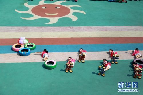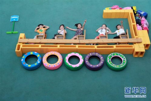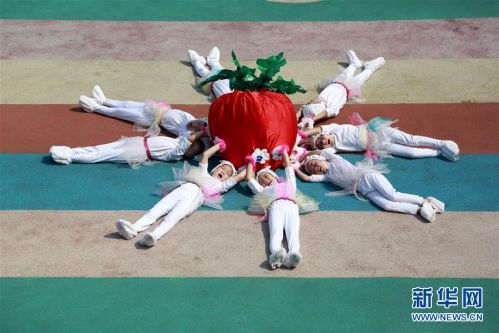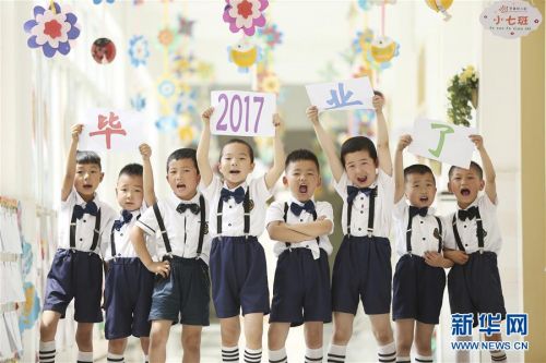 6月20日,河北省邢臺市第三幼兒園大班的小朋友在拍攝創意畢業照。新華社發(黃濤 攝)