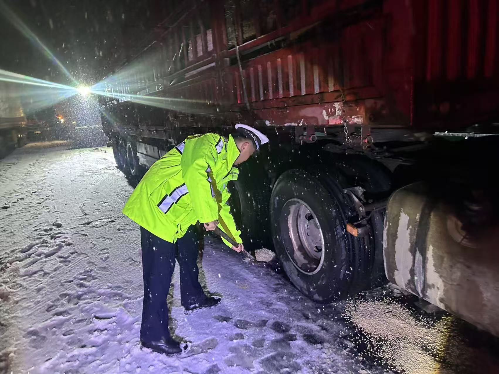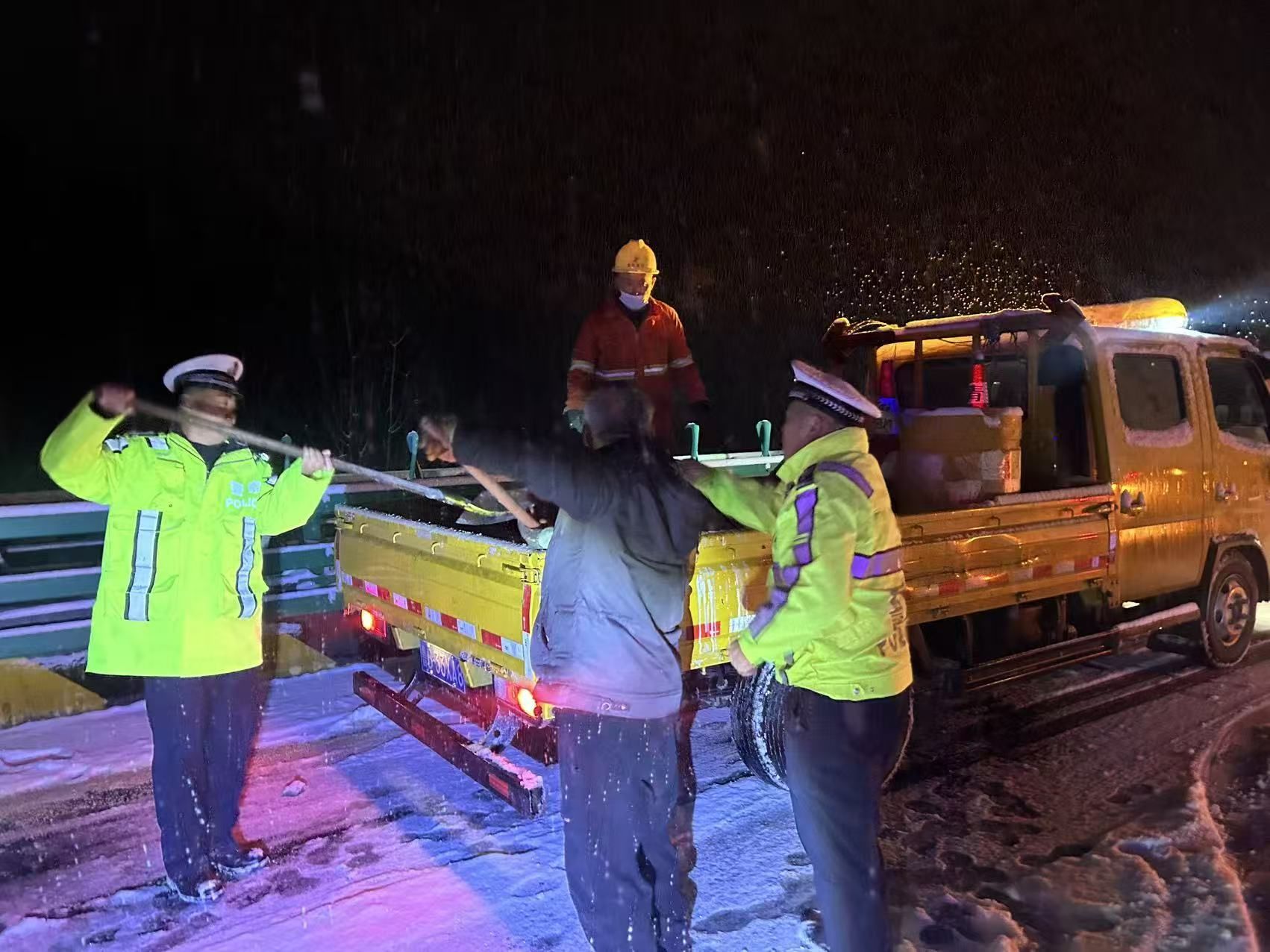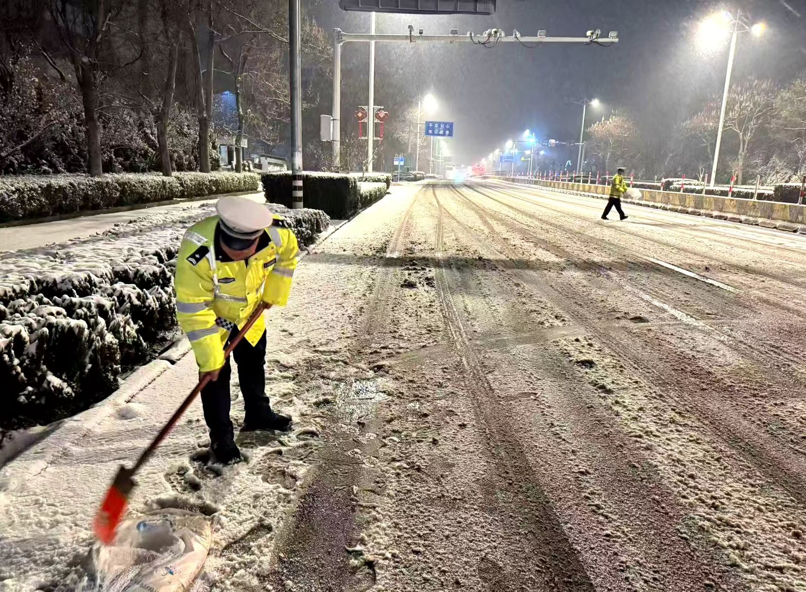 12日22時至13日凌晨2時雨夾雪天氣期間,各轄區交管大隊進一步加大巡邏密度與管控力度,在易結冰積雪路段、高架橋匝道、彎道、立交樞紐等重點區域設置固定崗,通過亮警燈、鳴警笛等方式提醒過往車輛減速慢行,并在積雪路段提前拋撒防滑沙,加強指揮疏導。高速公路交管大隊增派警力上路,備足融雪劑、警示標識等物資,保障應急處置需求。同步采用“警車巡+視頻巡”結合的方式24小時不間斷巡查,重點排查橋梁、長大下坡等易結冰路段,聯動養護部門開展除雪作業,協調救援力量前置部署,確保信息共享、高效配合。
