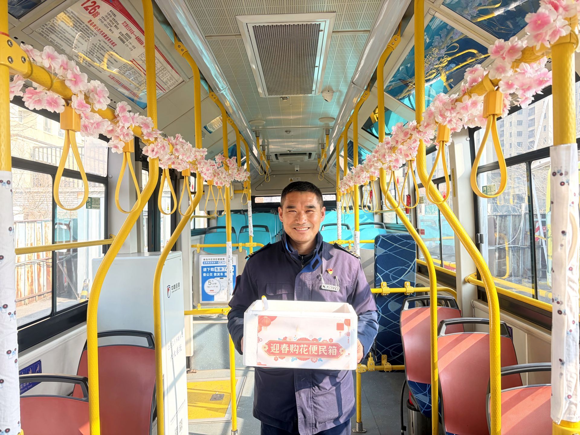 除了線路的優化,126路駕駛員徐正巖精心打造的“迎春購花便民車”,成為此次專線服務的一大亮點,將普通的公交車廂變成了流動的“暖心驛站”。在徐正巖負責的運營車輛上,一系列基于實際觀察和思考的便民設施悄然上線:
