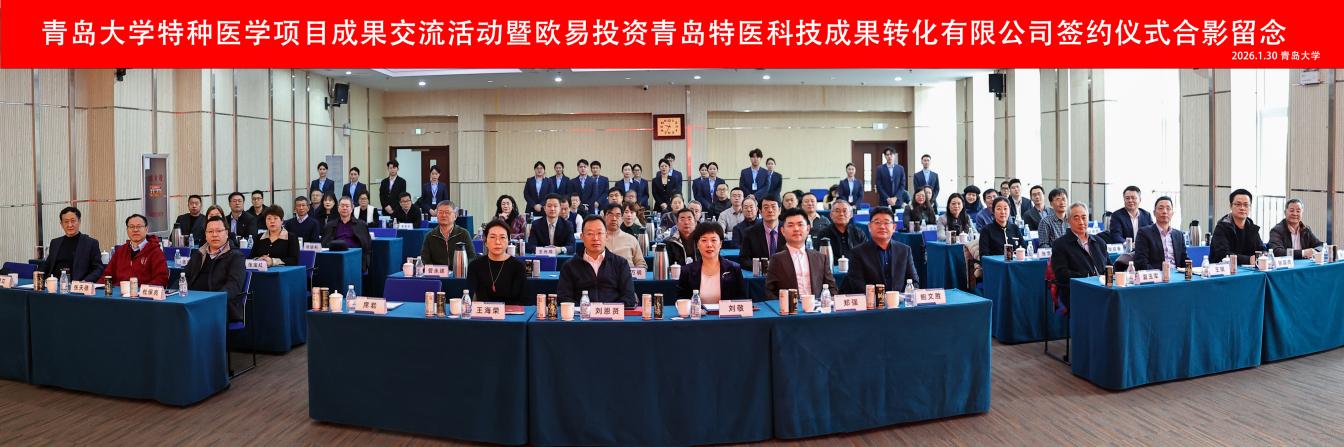 1月30日上午,青島大學(xué)特種醫(yī)學(xué)項(xiàng)目成果交流活動暨歐易投資青島特種醫(yī)學(xué)科技成果轉(zhuǎn)化有限公司投資簽約儀式在青島大學(xué)會議中心舉行。