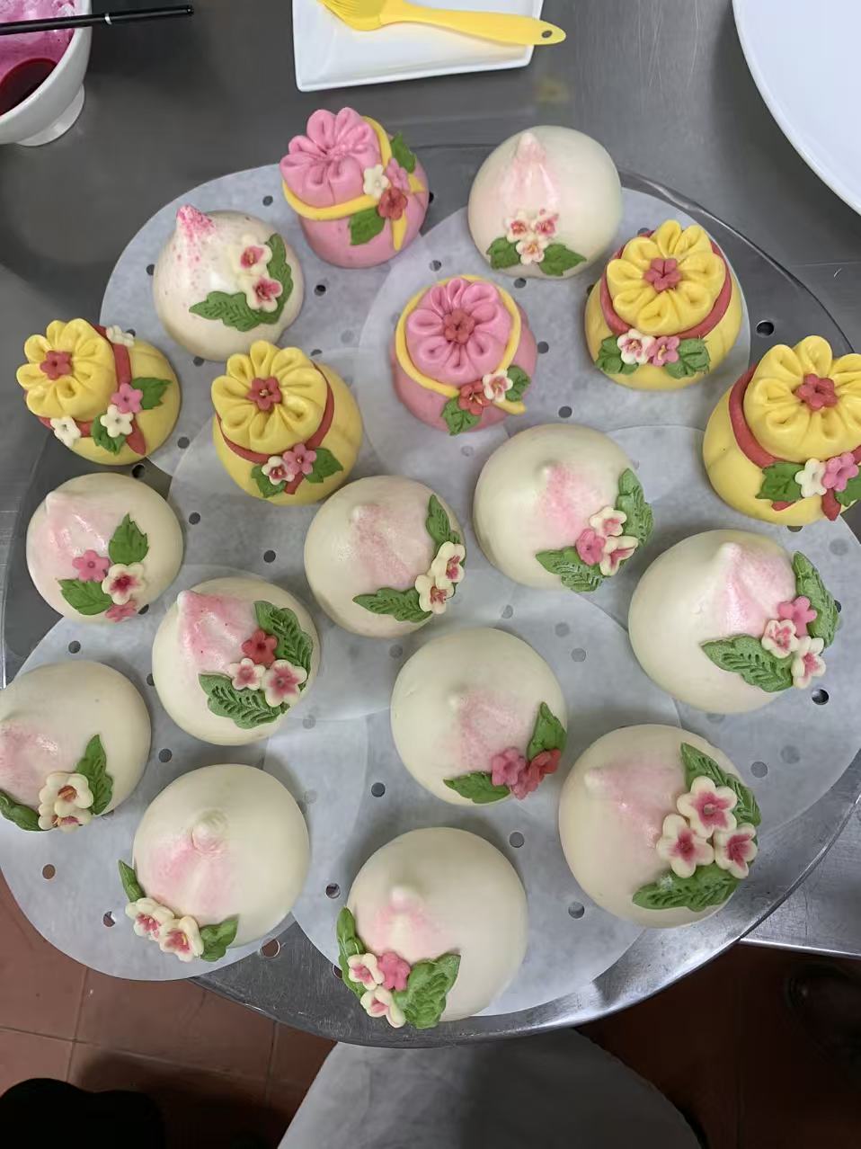 為讓文化體驗更具沉浸感,本次活動特別設置領導、品牌代表與非遺項目互動體驗環節。萬豪集團領導、千璽服裝品牌設計團隊成員親自參與非遺花餑餑制作,沉浸式感受傳統面塑技藝的指尖溫度與民俗韻味;同時圍繞非遺元素與現代服飾的創意結合展開探討,為后續文創聯合開發埋下伏筆。