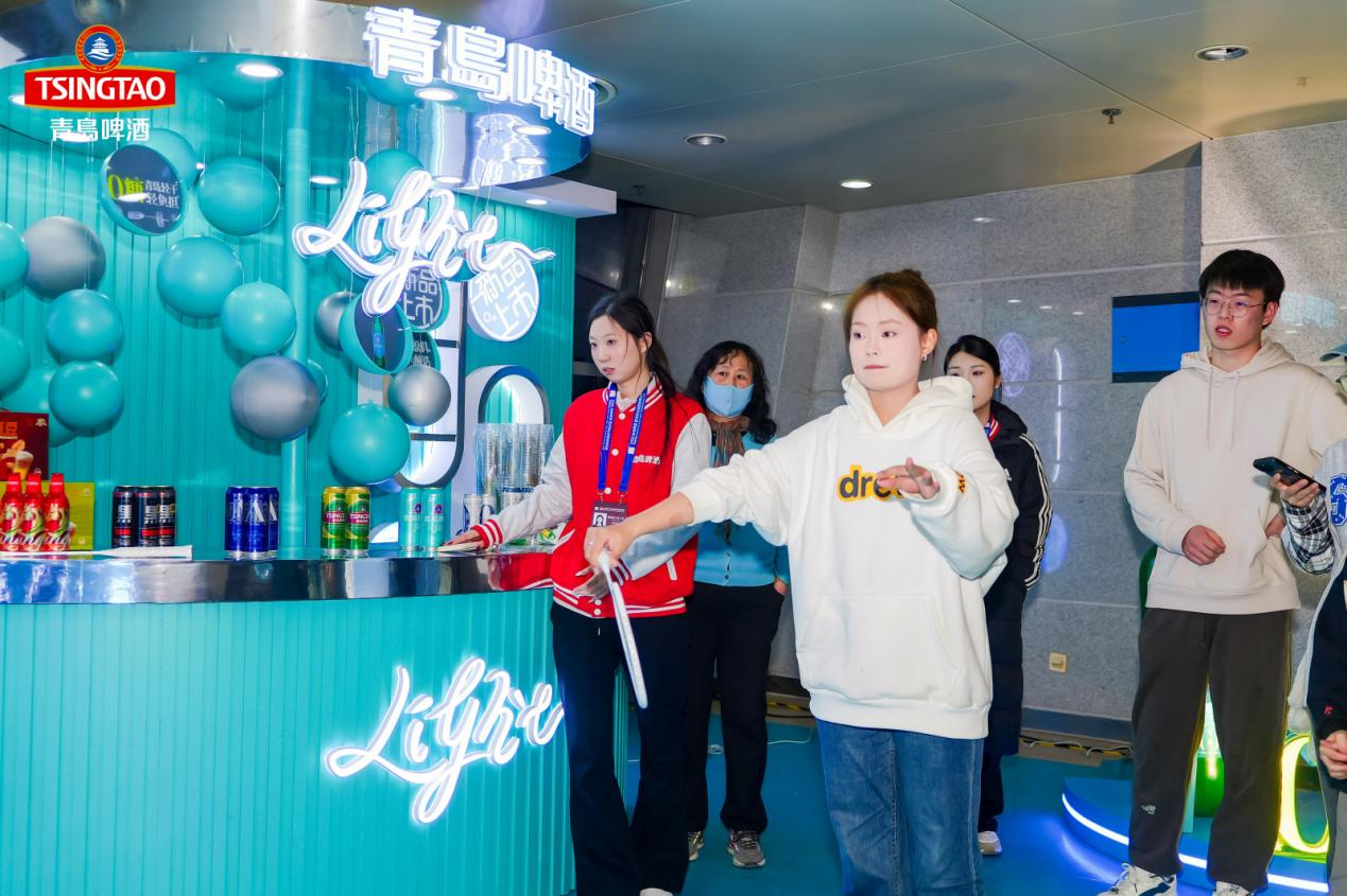 賽事期間,在15號入口右側、10號入口右側、13號入口右側分別是青島啤酒1903展區、青島啤酒輕干展區和青島啤酒無醇白啤展區。在這里,觀眾不僅可以暢飲多款新鮮地道的青島啤酒,更能沉浸于趣味十足的羽毛球主題互動游戲中,一試身手、挑戰樂趣。更別忘了與現場可愛醒目的青島啤酒主題玩偶合影留念,讓每一次歡聚,都有笑聲與影像為證。