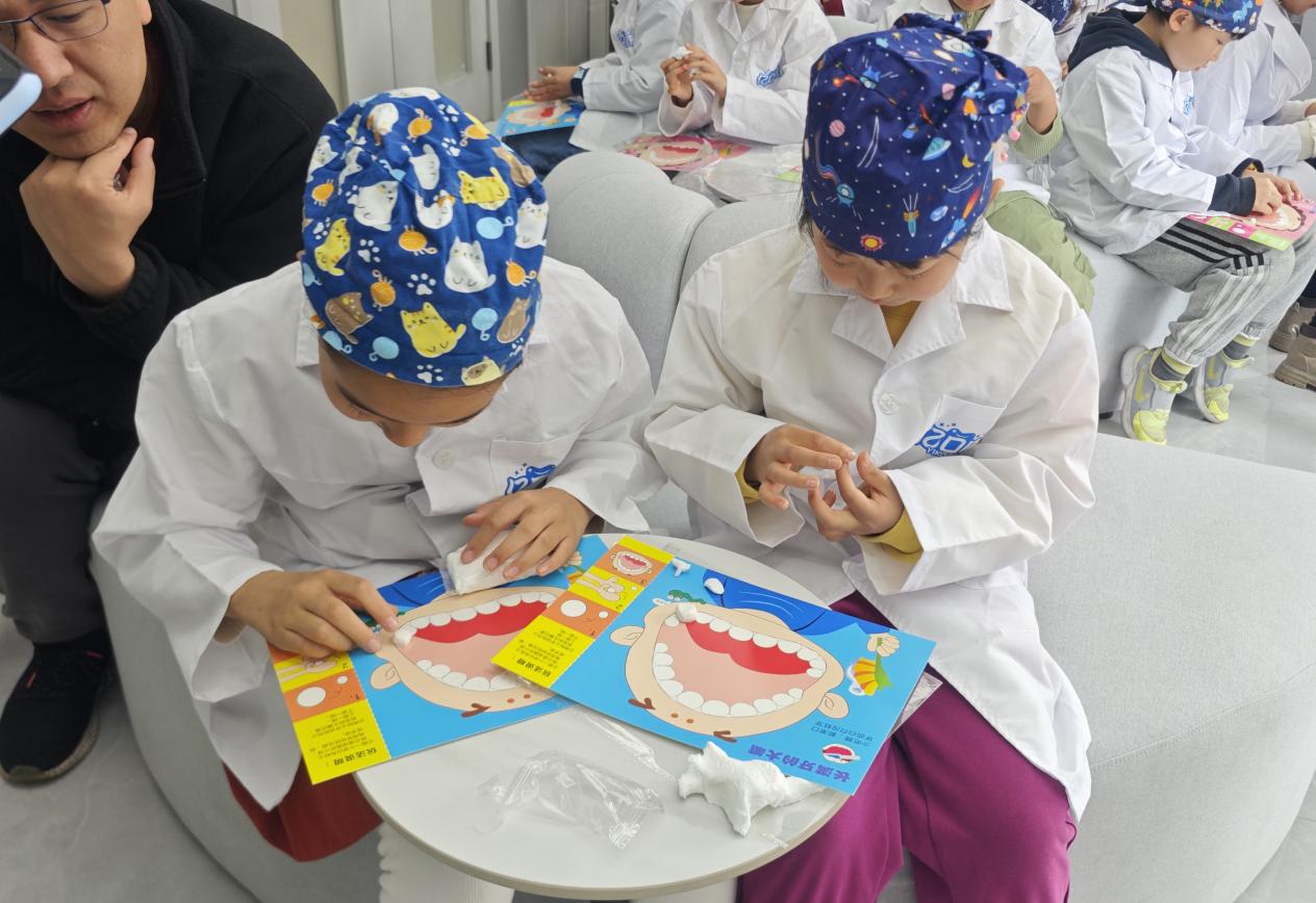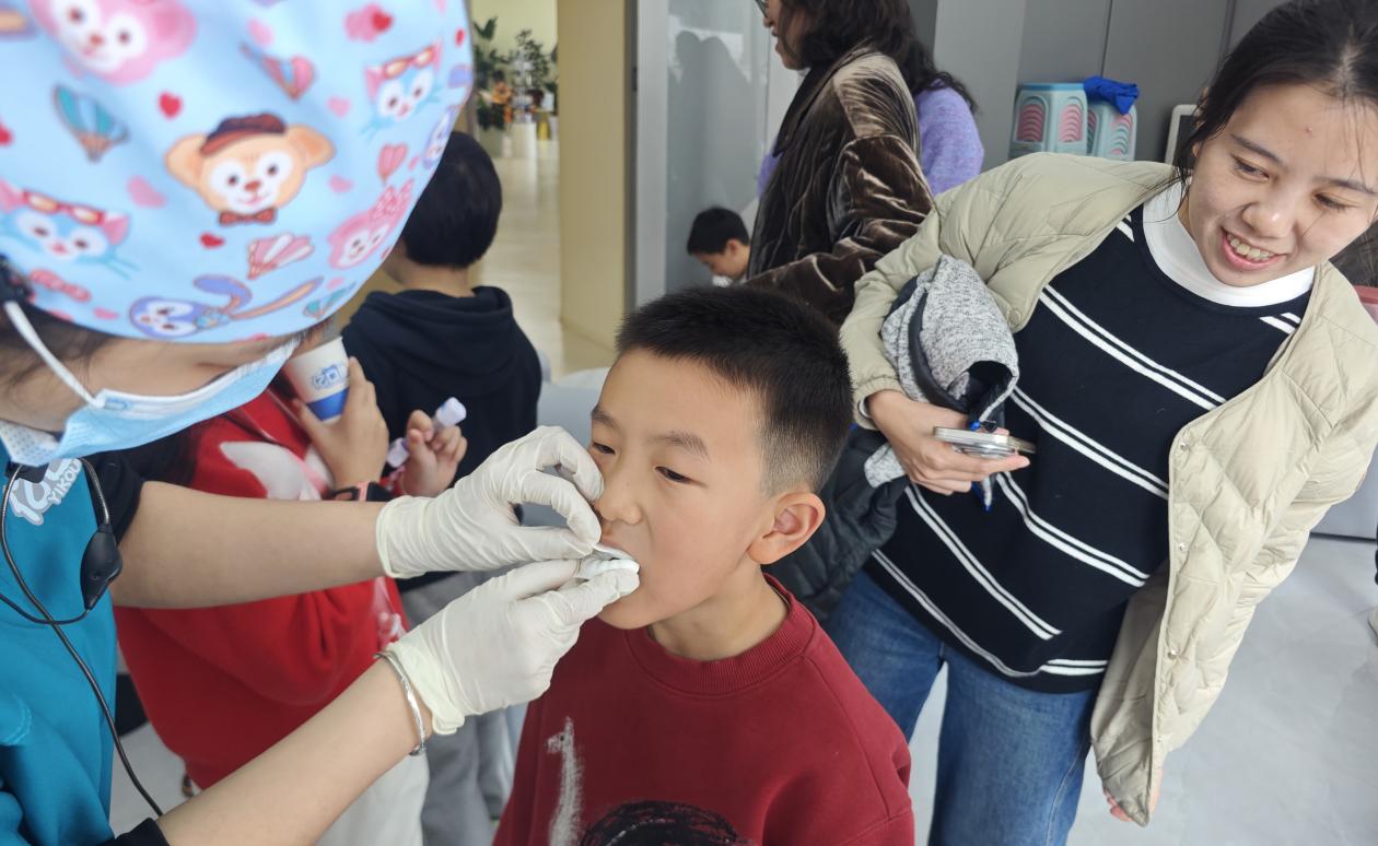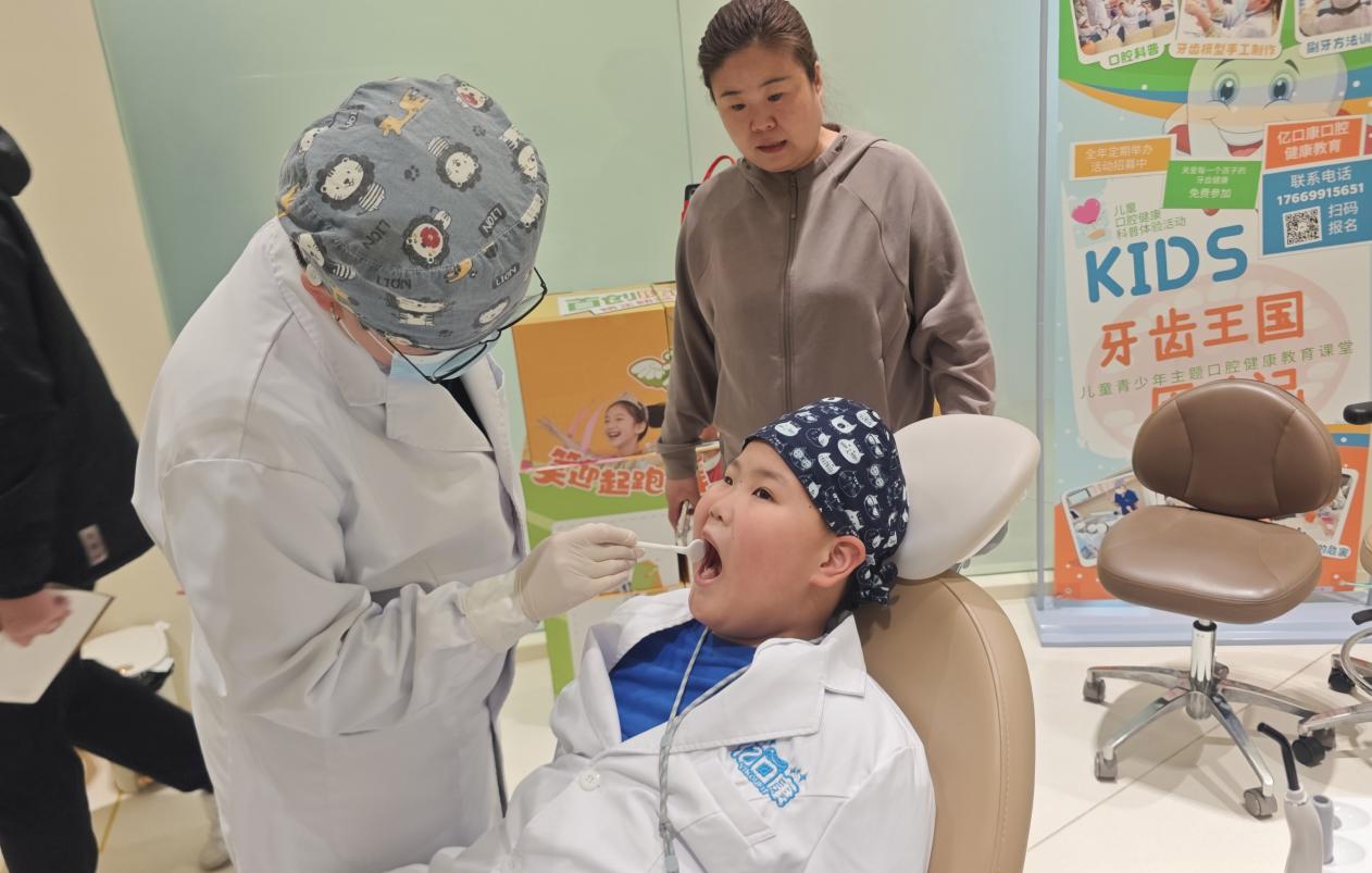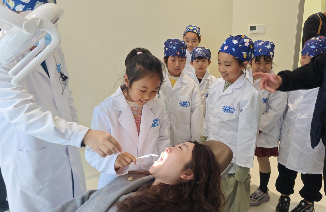 最令人期待的職業體驗環節如期而至。在醫生胡悅的專業指導下,小記者手持檢查工具,化身“小小牙醫”,為同行的家長“患者”進行口腔檢查和診斷。“叔叔,您的牙齒有點黃,平時要多認真刷牙哦。”“阿姨,您的牙縫里有食物殘渣,建議用牙線清理。”小記者模仿著醫生的樣子,仔細檢查、認真叮囑,一舉一動都有模有樣,充分展現了“小醫生”的責任與擔當。通過角色互換,小記者不僅掌握了基礎的口腔檢查方法,更深刻體會到了牙科醫生工作的辛苦與不易,也消除了對看牙的恐懼心理。