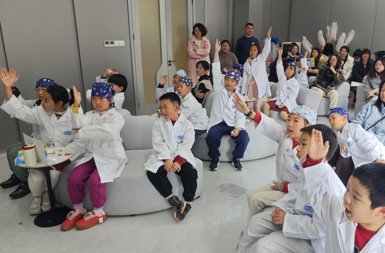 活動伊始,億口康口腔門診醫護人員周園對小記者的到來表示熱烈歡迎,并簡要介紹了本次研學活動的流程與意義。“牙齒是我們身體的重要伙伴,一口健康的牙齒,能讓我們盡情享受美食,綻放自信笑容,更與全身健康息息相關。”周園的話語讓小記者對接下來的體驗充滿期待,也讓大家深刻認識到愛牙護牙的重要性。隨后,在醫護人員的引導下,小記者有序換上專為孩子們定制的牙科醫生服裝,變身“小小牙醫”,正式開啟了這場牙齒探秘之旅。