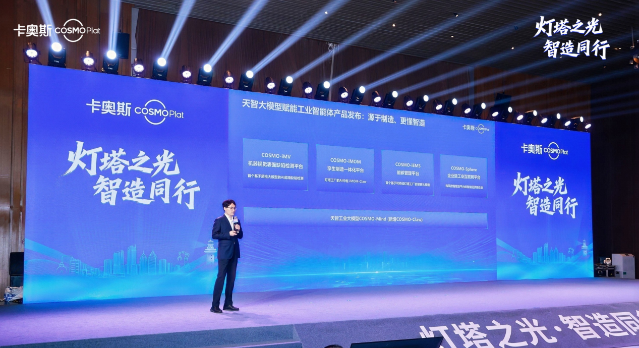 其中,COSMO-iMOM孿生制造一體化平臺持續升級“工廠大腦”,基于工廠數字化底座,打造“十三個功能模塊”+“iMOM Claw”+兩大類智能體+三大類技能庫,帶來“工業龍蝦”與多智能體協同兩大重磅升級。COSMO-Sphere企業級工業互聯網平臺致力于成為集團級客戶數字化底座,從賦能行業的工業互聯網平臺升級為行業“工業大腦”,提升“數模共振”下的意圖識別、智能調度等五大平臺級能力。COSMO-iEMS能碳管理平臺則基于能源大模型自研邊云一體智慧能碳平臺,邊側打造邊緣智控一體機,賦能能碳六大場景。COSMO-iMV機器視覺表面缺陷檢測平臺通過典型智能體工具鏈,助力企業從單點工位檢測到企業級智能質檢,再到全流程質量閉環。