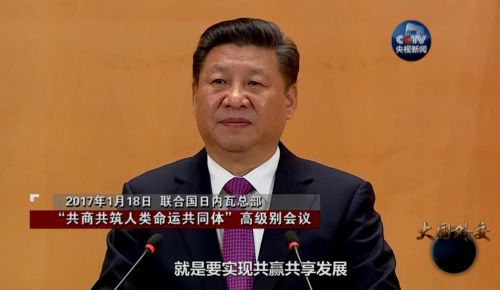 2017年1月18日 聯(lián)合國日內(nèi)瓦總部 “共商共筑人類命運(yùn)共同體”高級(jí)別會(huì)議 習(xí)近平:我提出“一帶一路”倡議,就是要實(shí)現(xiàn)共贏共享發(fā)展。
