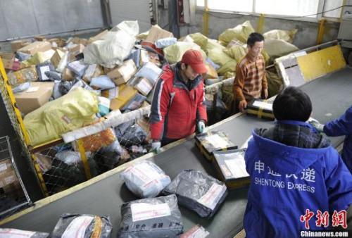 資料圖:長春市一家快遞公司中轉(zhuǎn)站的工作人員正在忙碌。張瑤 攝
