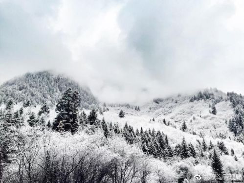 整個九寨溝上下一片銀白,樹木、巖石、屋舍、山峰全部披上了一層晶瑩的白色羽衣,仿佛走進(jìn)了一片圣潔仙境。圖片來源:九寨溝管理局官微