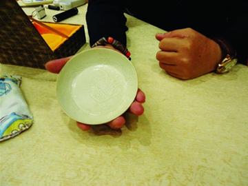 上午10時許,一對老年夫婦帶著一個錦盒來到鑒寶現場。打開盒子,露出一個用手絹蓋著的小盤子。記者看到,盤子不但周邊有龍,盤底還有兩條錦鯉。“這東西是從哪來的?”專家看后大吃一驚,經多人鑒定,這是一件北宋晚期的定窯瓷器,市場估價至少千萬元以上。