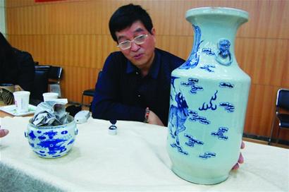 當看到第三件“寶物”瓷花瓶時,專家眼前一亮,經過鑒定它也屬于清代晚期,市場價3萬元左右。“這種花瓶是古代大戶人家女子出嫁時使用的。”專家說。可奇怪的是,瓶底有一個明顯人工留下來的小孔。王先生說,奶奶出身于地主家庭,這些東西多是她出嫁時帶過來的嫁妝。至于花瓶底下的小孔,聽奶奶說,上世紀六七十年代,家里人種地時為圖方便,便在瓶底打孔,里面盛放莊稼種子,人走路時,種子會從花瓶里漏出來,相當于現在的播種機。
