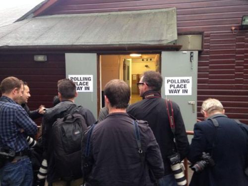 格拉斯哥投票點外等待的記者