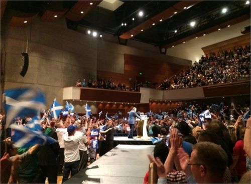 17日,蘇格蘭政府首席大臣薩蒙德在有“蘇格蘭的心臟”之稱的珀斯,為次日的投票做最后演講
