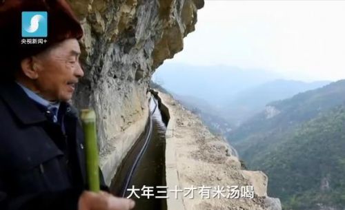 當時連請來的專業施工隊都望而卻步,但57歲的黃大發二話不說,把纜繩系在自己身上,讓人拉著翻下了懸崖。黃支書當時也是五十多歲的人了,他都能夠像這樣子下去,大伙和施工隊都沒話可說。施工隊在前面鑿壁打槽,村民們在后面挑土砌堡。沿著懸崖峭壁一寸一寸鑿,一尺一尺敲,水渠一米一米向前延伸。