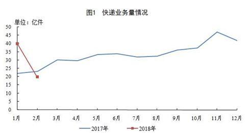 2月,全國快遞服務企業業務量完成19.9億件,同比下降15.2%;業務收入完成289.4億元,同比下降1%。