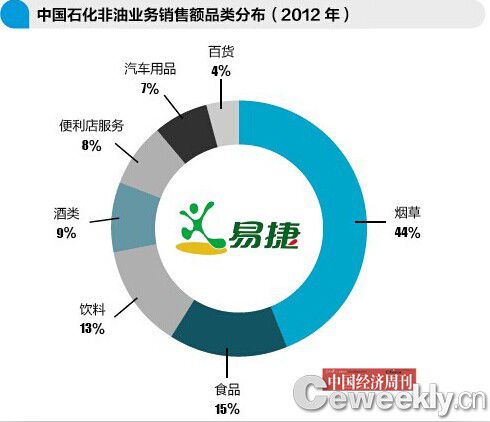 中石化銷售公司2008年起涉足非油業(yè)務(wù),在加油站開設(shè)易捷便利店。2014年3月17日,中石化銷售公司的全資子公司中石化易捷銷售有限公司在北京成立。目前已在全國加油站內(nèi)開設(shè)易捷便利店2.3萬家,覆蓋了中石化3萬余家加油(氣)站網(wǎng)絡(luò)中的75%以上,據(jù)稱是便利店連鎖行業(yè)內(nèi)開店最多的品牌。2013年易捷便利店的銷售額達(dá)133億元。
