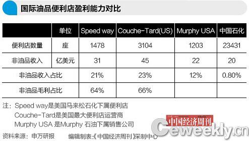 另一方面,在發(fā)達(dá)國家,加油站發(fā)展非油品業(yè)務(wù)已是司空見慣。申銀萬國的研報(bào)顯示,美國加油站便利店的非油品收入占比在13%~29%之間,非油品毛利占比則在50%~77%。中石化的便利店還有很大的盈利空間。