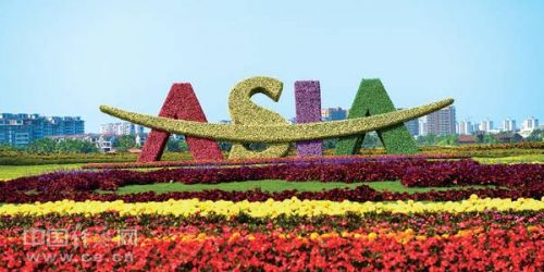 海南博鰲街頭的美麗花壇。 經濟日報-中國經濟網記者 高興貴攝