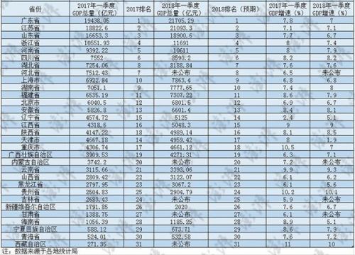 據澎湃新聞(www.thepaper.cn)統計,截至4月27日,全國已有27個省(市、區)公布了2018年一季度經濟數據。結合各地去年的增長情況,新的排名逐漸浮出水面。