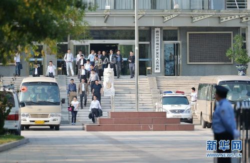 9月24日,人們在庭審結束后走出廊坊經濟技術開發區法院大樓。當日,河北省廊坊市中級人民法院一審開庭審理國家發展和改革委員會原副主任、國家能源局原局長劉鐵男受賄案。