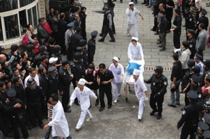 昨日,救護(hù)人員撤離昆明市明通小學(xué)。當(dāng)日,該所小學(xué)發(fā)生踩踏事故,6人死亡。圖/CFP