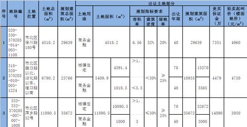 市北區出讓三宗地塊具體指標表格(點擊查看大圖)