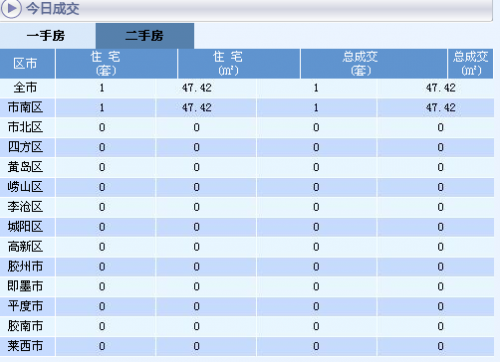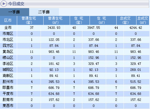 10月2日青島新房成交44套 二手房成交1套 2014-10-03 10:11 array(1) { [6742]=> array(2) { [2]=> array(3) { [0]=> string(6) "青島" [1]=> string(6) "新房" [2]=> string(9) "二手房" } [4]=> array(1) { [0]=> string(12) "新浪樂居" } } } 新浪樂居 0 新房成交情況 二手房成交情況 網上房地產交易數據顯示,10月2日,島城一手房成交44套,總成交面積4244.42㎡。其中住宅成交了40套,總成交面積3947.55㎡,其中普通住宅即144平方米以下住宅成交了37套,總成交面積3430.93㎡。2日島城各區市中,黃島區成交了11套列售榜第一位;即墨、平度成交了7套并列銷售榜第二位;膠州市成交了6套位列第三位。 10月2日,青島市二手房成交1套,總成交面積47.42㎡, 其中住宅成交了1套,總成交面積47.42㎡。