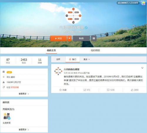 目前,@六月的雨在哪里的微博頁面上只有一條動態消息:“2018年10月4日,我們已經將‘立案復議申請’遞交到了豐臺分局,是否立案的結果會在30日內告知我們。再次感謝大家的關注。”