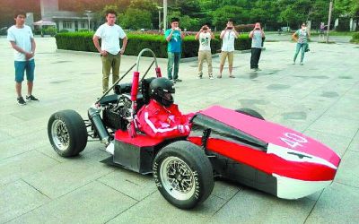 記者了解到,這是武漢科技大學赤驥方程式賽車隊,為參加2014中國大學生方程式汽車大賽而特意制作出的參賽用車。車隊隊長張同學說,自己從小就非常喜歡汽車,去年接觸到中國大學生方程式汽車大賽后,便下定決心要參加今年的比賽。在向學校提出申請后,得到學校和學院的大力支持。從今年3月份起,整個車隊就著手制作賽車,經過半年多的努力,終于在9月底順利完成了車隊賽車制造。造車花了12萬元左右,其中8萬元由學校提供,剩下的由贊助商提供,張同學還把自己打工掙來的一點錢也投了進去。賽車排量0.6升,除了發動機外,大部分部件都是由車隊成員自己制作。目前,賽車正在進行賽前調試。