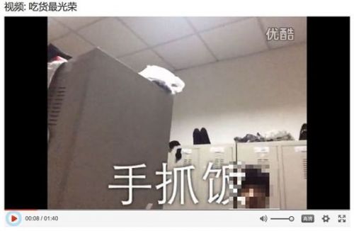 (這段視頻拍攝于更衣室,當畫面中的女孩對視頻拍攝者描述“手抓飯”的時候,她說“那天早上我給你買啥被扔了”,很明顯兩者彼此認識。)