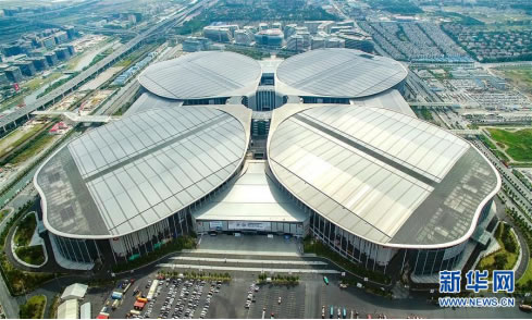 鳥瞰上海國家會(huì)展中心(國家會(huì)展中心供圖)。圖片來源:新華社