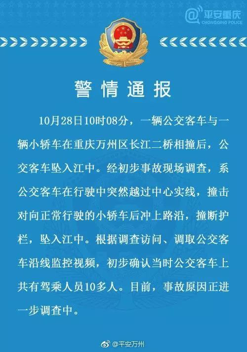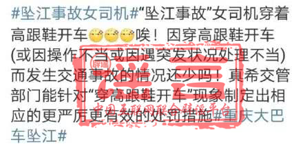 【謠言】10月28日上午,重慶市萬州區一輛大巴車在萬州長江二橋與一輛小轎車發生碰撞后墜入江中,部分媒體稱“女司機穿高跟鞋逆行導致碰撞”。