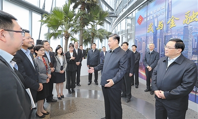 位于陸家嘴的上海中心大廈建筑總高度632米,是已建成的中國第一、世界第二高樓,是上海的一座標志性建筑。2007年,習近平在上海工作期間,十分重視上海中心大廈建設,多次到陸家嘴地區實地調研,親自研究陸家嘴地區規劃,親自審定上海中心大廈設計方案,推動相關工作,要求把上海中心大廈建設成為綠色、智慧、人文的國際一流精品工程。大廈22層的陸家嘴金融城黨建服務中心,是陸家嘴金融貿易區綜合黨委建立的樓宇黨建陣地。6日上午,習近平來到這里,詳細了解中心開展黨建工作等情況。在黨建服務中心的空中花園研討交流區,3家企業黨支部正在聯合開展“我與金融城共成長”主題黨日活動,習近平來到他們中間,同他們親切交談。習近平充分肯定上海從陸家嘴金融城產業集聚、企業匯聚、人才廣聚的實際出發,創新黨建工作思路和模式,為樓宇內各種所有制企業的基層黨組織和黨員提供學習指導、管理服務、活動平臺的做法。習近平指出,黨建工作的難點在基層,亮點也在基層。隨著經濟成分和就業方式越來越多樣化,在新經濟組織、新社會組織就業的黨員越來越多,要做好其中的黨員教育管理工作,引導他們積極發揮作用。基層黨建既要發揚優良傳統,又要與時俱進,不斷適應新形勢,拓寬基層黨建的領域,做到黨員工作生活在哪里、黨組織就覆蓋到哪里,讓黨員無論在哪里都能找到組織找到家。希望上海在加強基層黨建工作上繼續探索、走在前頭。我們在有黨員的各類企業里建立黨組織,目的是為企業的黨員提供管理和服務,團結凝聚員工遵紀守法,遵守企業規章制度,發揮黨員先鋒模范作用。這也有利于企業加強管理,有利于推動企業健康發展。