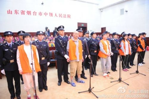 2014年10月11日上午9時,山東招遠涉邪教故意殺人案在煙臺中院第一審判庭公開宣判。張帆、張立冬等2人被判死刑,呂迎春被判無期徒刑,張航有期徒刑10年,張巧聯有期徒刑7年。圖為現場。