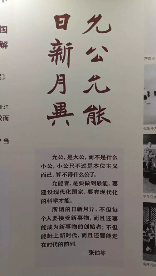 △南開(kāi)校訓(xùn)“允公允能 日新月異”。(央視記者黃京輝拍攝)