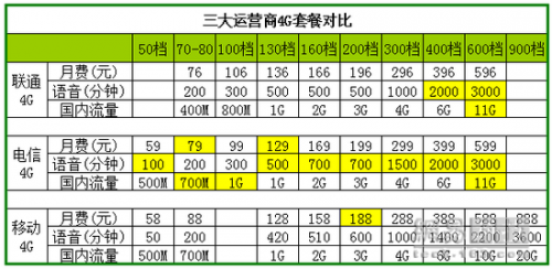 所以,電信的4G套餐整體上更具優(yōu)勢,尤其是在中低端用戶市場更具性價比,聯(lián)通其次,移動的套餐最貴。