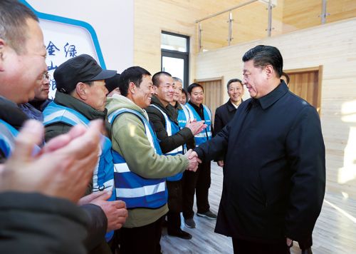 2019年1月16日至18日,中共中央總書記、國家主席、中央軍委主席習近平在京津冀考察,主持召開京津冀協同發展座談會并發表重要講話。這是1月16日下午,習近平在河北雄安新區“千年秀林”大清河片林一區造林區域秀林驛站,同參與造林護林的村民親切握手。新華社記者 鞠鵬/攝