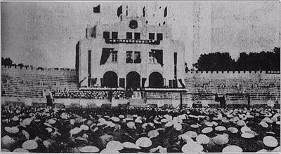 1950年10月10日,海軍青島基地在匯泉體育場(chǎng)召開成立大會(huì)。