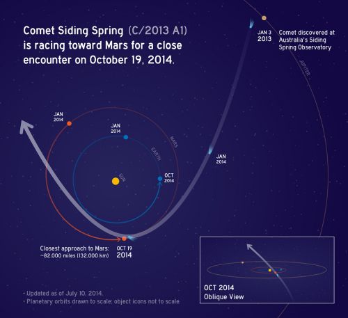 據悉,這是賽丁泉彗星于2013年1月被發現以來首次從奧爾特云到太陽系內部來“訪問”, 奧爾特云包含數萬億彗星,距離太陽約50000個天文單位。(一個天文單位指的是地球到太陽的距離,約9300萬英里或1.5億公里)。由于現如今還沒有任何訪問奧爾特彗星云的太空計劃,此次賽丁泉彗星掠過火星提供了一個千載難逢的機會。此次研究將增進對于彗星組成和行為以及太陽系早期情況的了解。