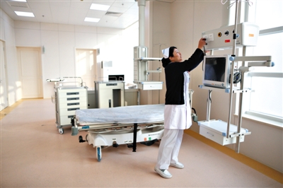 懷柔醫院,護士長在檢查專門為APEC會議配置的急救室。