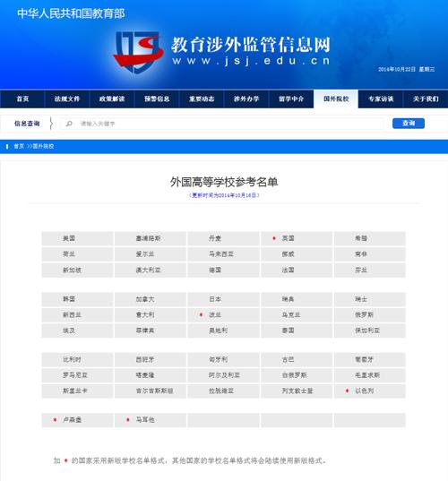 新版的外國高校名單將包含該國高等教育體制簡介、學校名稱(本地語言)、英文校名或譯名(如有)、中文譯名、學校官方網址和備注等信息。鑒于公布名單工作覆蓋面廣,涉及國家和學校數量眾多,核查工作精細且多有反復,名單的新增和更新都需要逐步進行。我們將不斷加快這一進程,努力覆蓋更多國家和地區的高校。按照新版上網的外國高校已用“※”號標記。