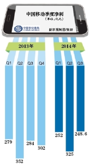 2013年10月,中移動公布2013年第三季度凈利潤同比下滑1.9%,中移動歷史上首次出現凈利潤同比下滑。此后,中移動凈利潤一直保持同比下滑狀態(tài)。