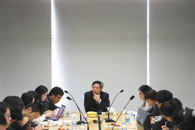 任志強昨日答記者問時說,最遺憾沒有多生幾個娃娃。新京報記者 李飛 攝