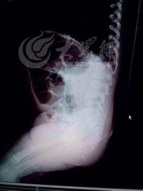 記者了解到,10月20日,紫萱的父母發現她有異常,遂帶她到高唐縣的醫院進行檢查。拍片的結果讓人大吃一驚,僅僅11個月大的小女孩兒,身體內竟然有12根鋼針狀的物體。從拍出的片子來看,12根鋼針插滿小紫萱身體臀部、腹腔、骨盆等各個部位,觸目驚心。據紫萱的父親范光生說,一個月之前,紫萱的母親在為她擦屁股時,紫萱總是哭鬧,當時從她的屁股上已經取出了4根針,當時以為是孩子玩耍時,自己不小心被針扎了,拔出來后,就沒當回事兒。