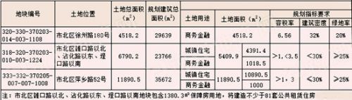 公告顯示1號地塊位于市北區(qū)徐州路180號,正處于中央商務(wù)區(qū)的核心位置。出讓土地面積4518.2㎡,規(guī)劃建筑總面積29639㎡,土地用途為商務(wù)金融用地,容積率6.56,建筑密度32%,綠地率20%,出讓年限為40年。競買保證金7351萬元,拍賣起叫地價4960元/㎡。