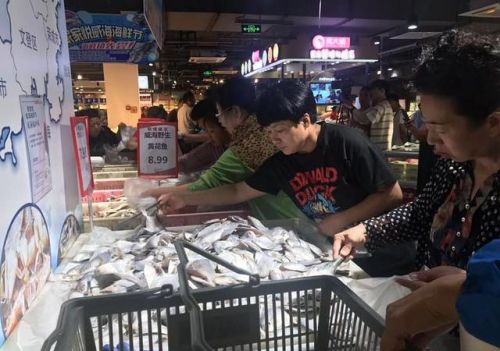 圖:濟南市民在家家悅超市選購海鮮