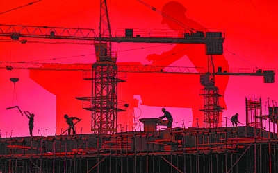 攝影者們在展現中國自信昂揚的奮進歷程的同時,也聚焦了每一位默默無聞的奮斗者的感人瞬間。在《京廣鐵路五百人檢修高空秀》中,五百個戴著安全帽的工人在高空電線上進行檢修,他們行走在危險的邊緣,卻保障了每一位乘客旅途的安全。在《天匠》中,三位城市的高空“美容師”在城市尚未蘇醒的時刻,維護著城市的容顏。《炮火下的士兵》通過四散的硝煙和士兵的神情,營造出了緊張的現場感,彰顯了新時代軍人練為戰、戰必勝的使命和責任。
