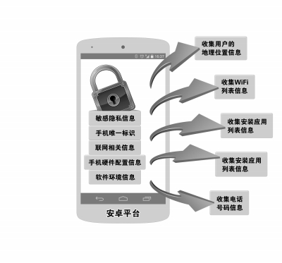 該報告針對當前安卓平臺1000款熱門應用中,最流行的10款正規廠商廣告插件進行了一次全面的安全性分析后發現,10款廣告插件中,有8款會收集用戶的地理位置信息,7款會收集WiFi列表信息,4款收集安裝應用列表信息,3款收集電話號碼信息。所有廣告插件均會收集用戶的五類個人隱私信息:敏感隱私信息、手機唯一標識、聯網相關信息、手機硬件配置信息和軟件環境信息。