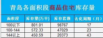 從面積段來看,需求量最大的100平以下剛需產品存量近10萬套,去化周期17個月,100-144平面積段庫存4萬多套,144平以上存量2萬多套。